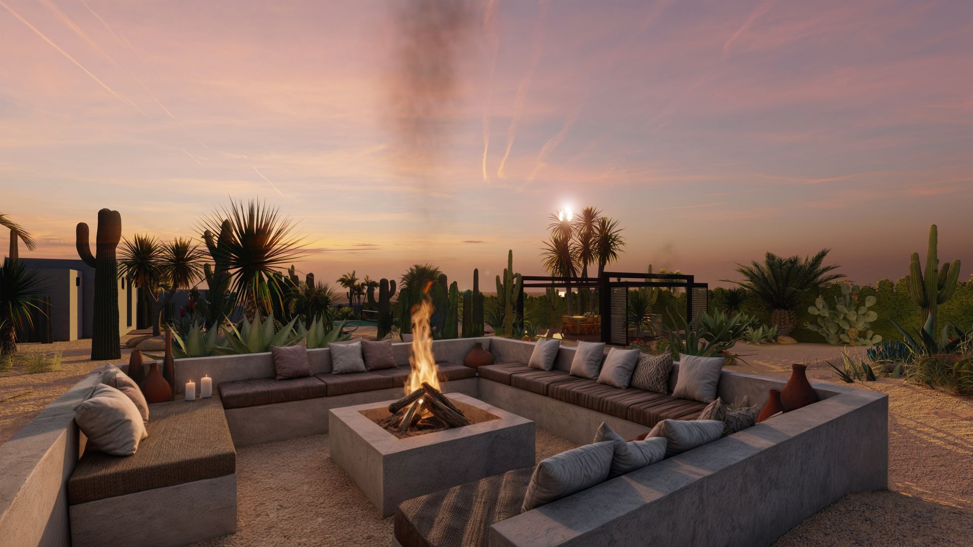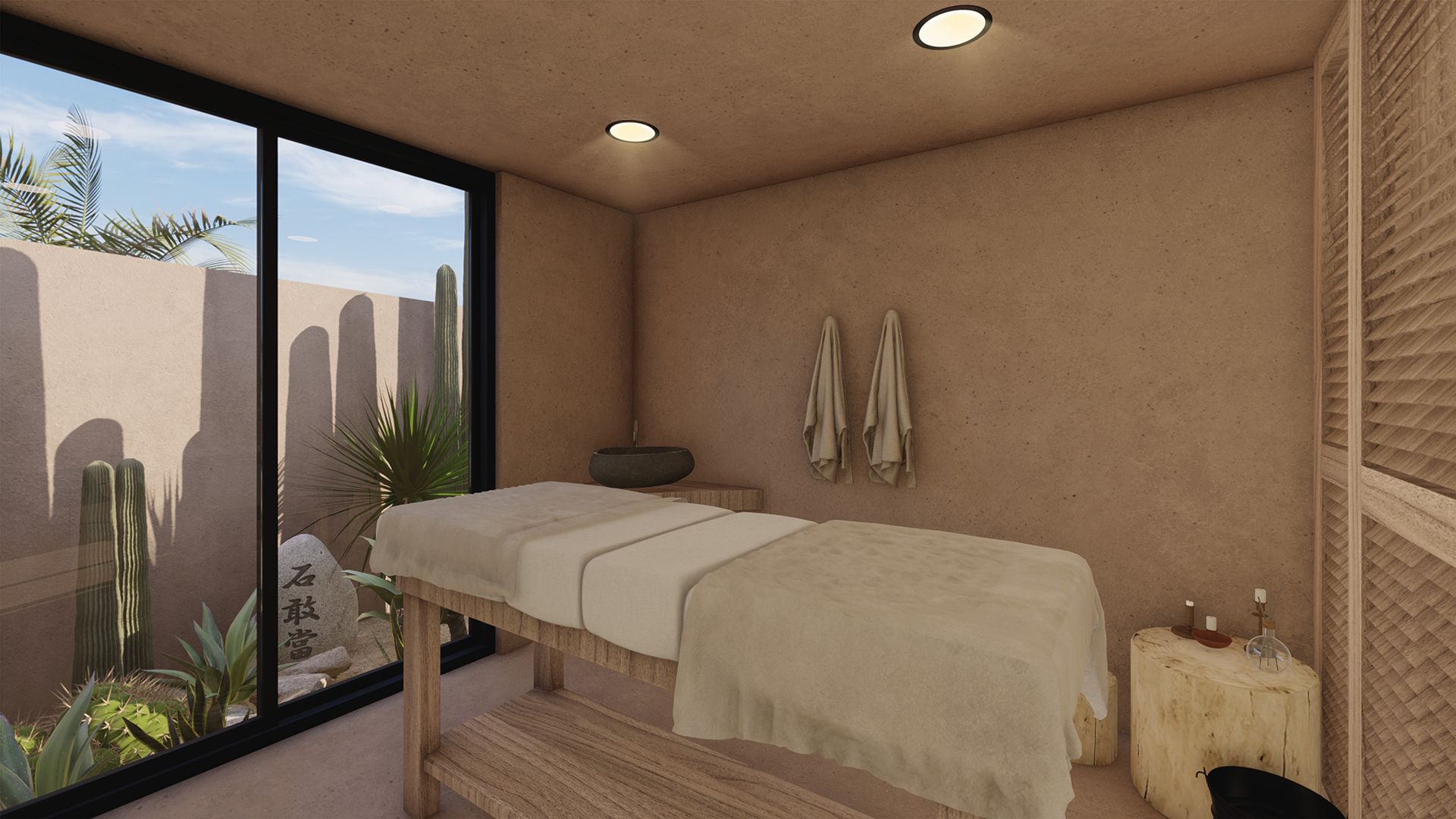 Alberca Infinita, Jacuzzi, Asoleadero, Palapa, Spa (Opcional), Fire Pit, Cancha de Bochas y Acceso Vehicular.