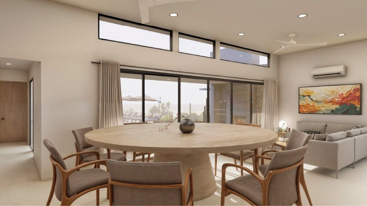 Su trazo abierto integra perfectamente los espacios interiores con el exterior, creando un flujo armónico con la naturaleza. Amplios ventanales inundan cada habitación con luz natural, permitiéndole absorber las impresionantes vistas del mar.